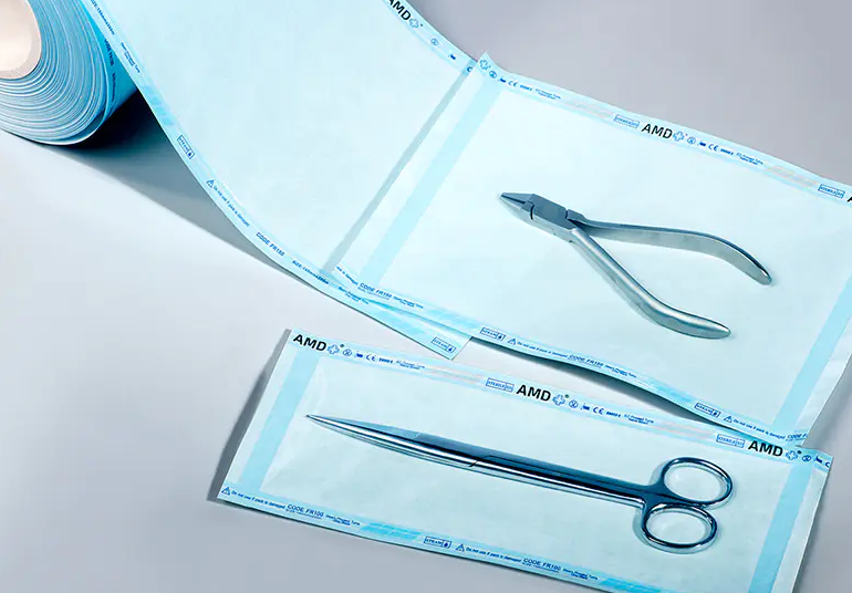 Format: Dostarczane w rolkach, które można przyciąć do żądanej długości, a następnie zamknąć i wysterylizować po owinięciu przedmiotu.